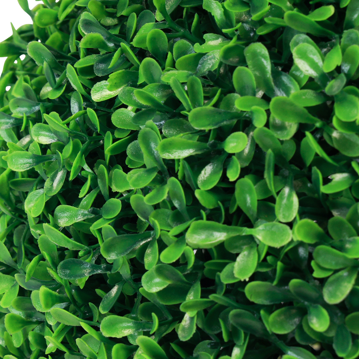A mesterséges lombozat fénye olyan megjelenést kölcsönöz a dekoratív dobozgömbnek, mintha csak ápoló spray-vel kezelte volna a zöld növényt. Természetesen ez a puszpánggolyó nem igényel igazi ápoló sprayt, és nem kell öntözni. A bukszus sokáig úgy fog kinézni, mintha zöld hüvelykujj lenne egy ilyen dekoratív növényhez.
