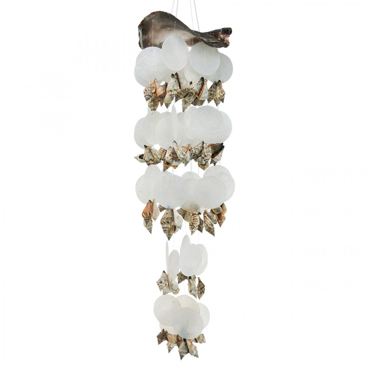A tengeri megjelenésű szélcsengő nem csak megjelenésével nyűgöz le, hanem dallamos, megnyugtató hangjával is, amikor a gyöngyház dekoráció és a csigaház megmozdul a szélben.