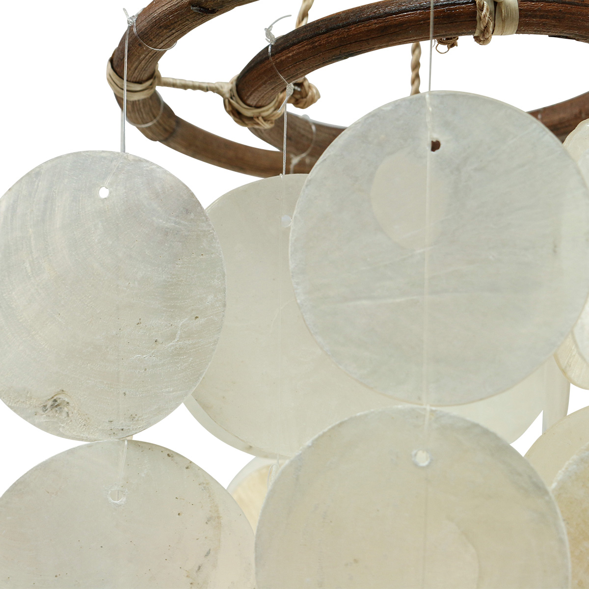Ez a Capiz szélcsengő egy nagyszerű tengeri függő dekoráció, amely kagylókból készült kerek gyöngyház korongok formájában.Fantasztikusan szép ez a gyöngyház kagylók finom szeleteiből készült kagylódísz! – Ugyanakkor magával ragadó az a nagyszerű hangzás, ami akkor jön létre, amikor a capiz korongok a kagylószálak mozgása során egymásnak ütköznek, például a szél hatására.