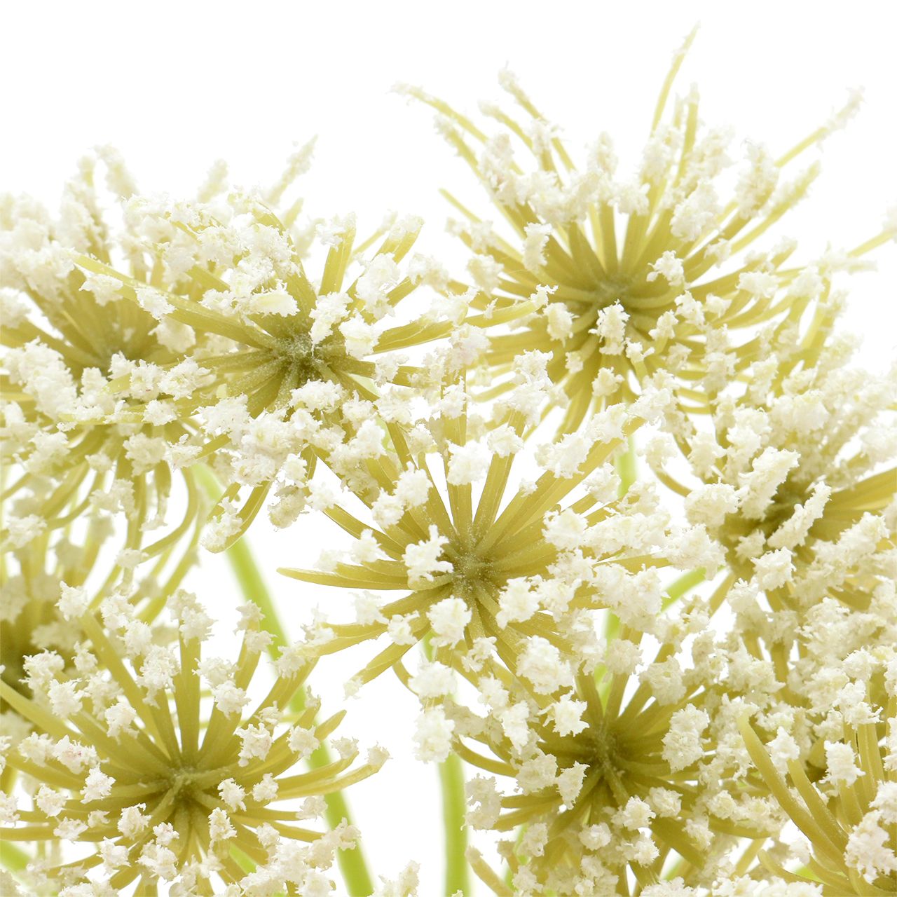 A fehér műcickafark hossza körülbelül 84 centiméter, a virágfej átmérője pedig körülbelül 25 centiméter. Teljesen műanyag vagy selyem anyagból áll.