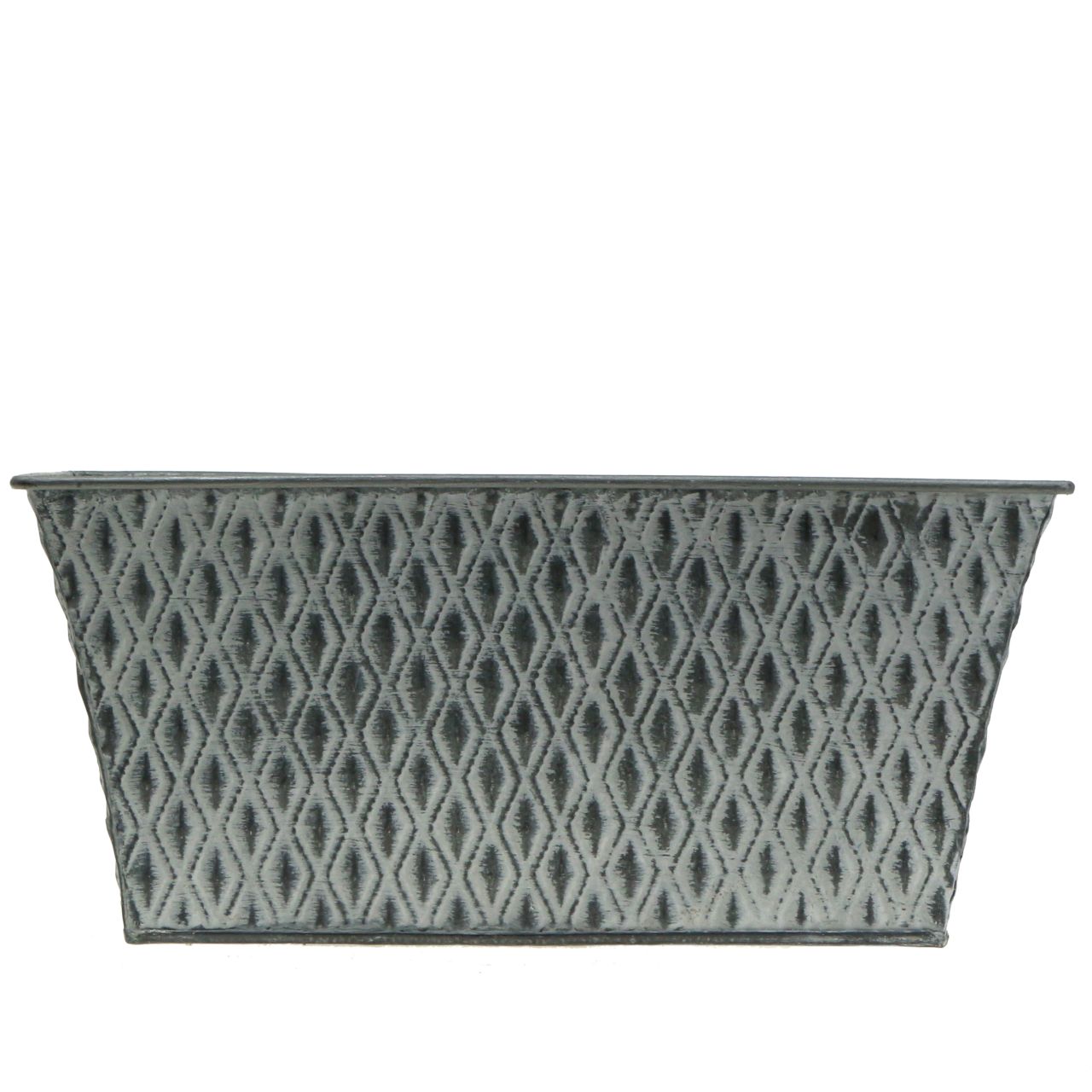 Ezzel a jellegzetes gyémántmintázatú cinkedénnyel különösen elegáns ültetvényeket készíthet tavaszi dekorációihoz. A horganyzott fémet újra és újra kis rombuszokkal borítják, amelyek az anyagba vannak domborítva, és kívül puha szürke felülettel rendelkeznek. Ez az eljárás olyan domborművet hozott létre, amely érdekes vintage megjelenést kölcsönöz a fémedénynek – ideális ültetésre!