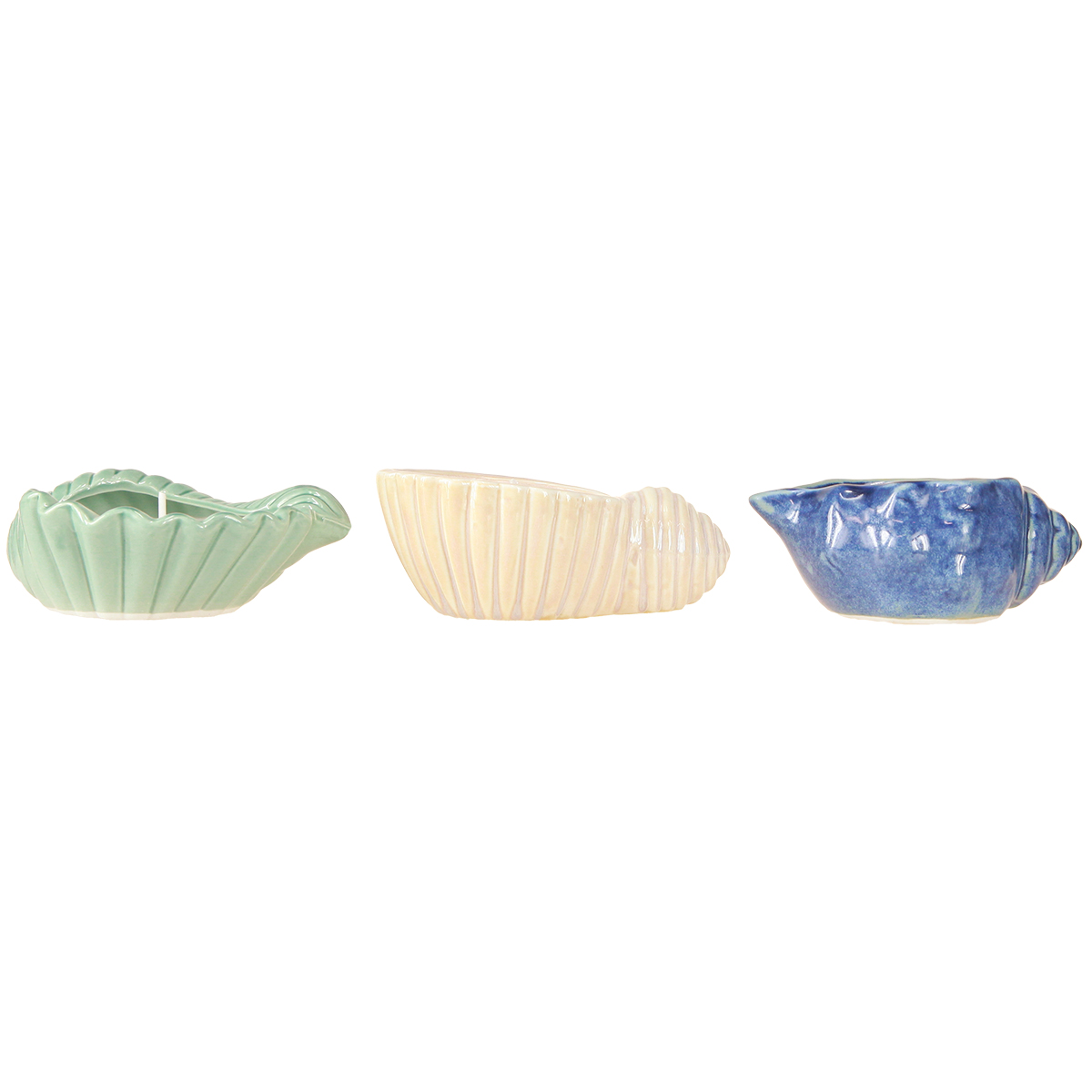 - Három egyedi kagylóforma tengeri színekben: fehér, zöld és kék.