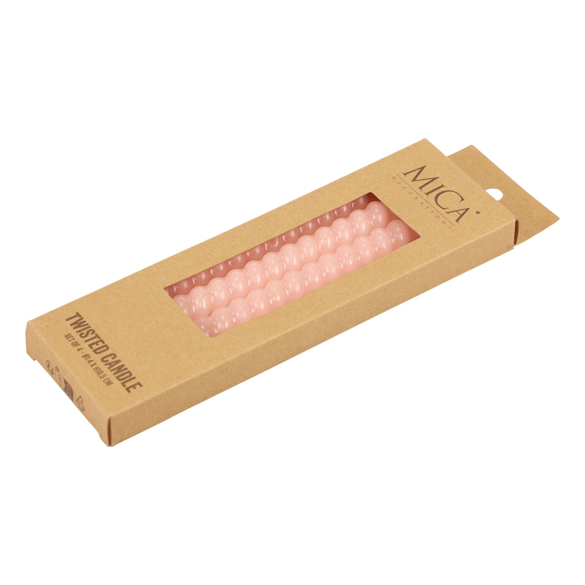 Csavart gyertyák spirál gyertyák világos rózsaszín Ø1,4cm H18cm 4db