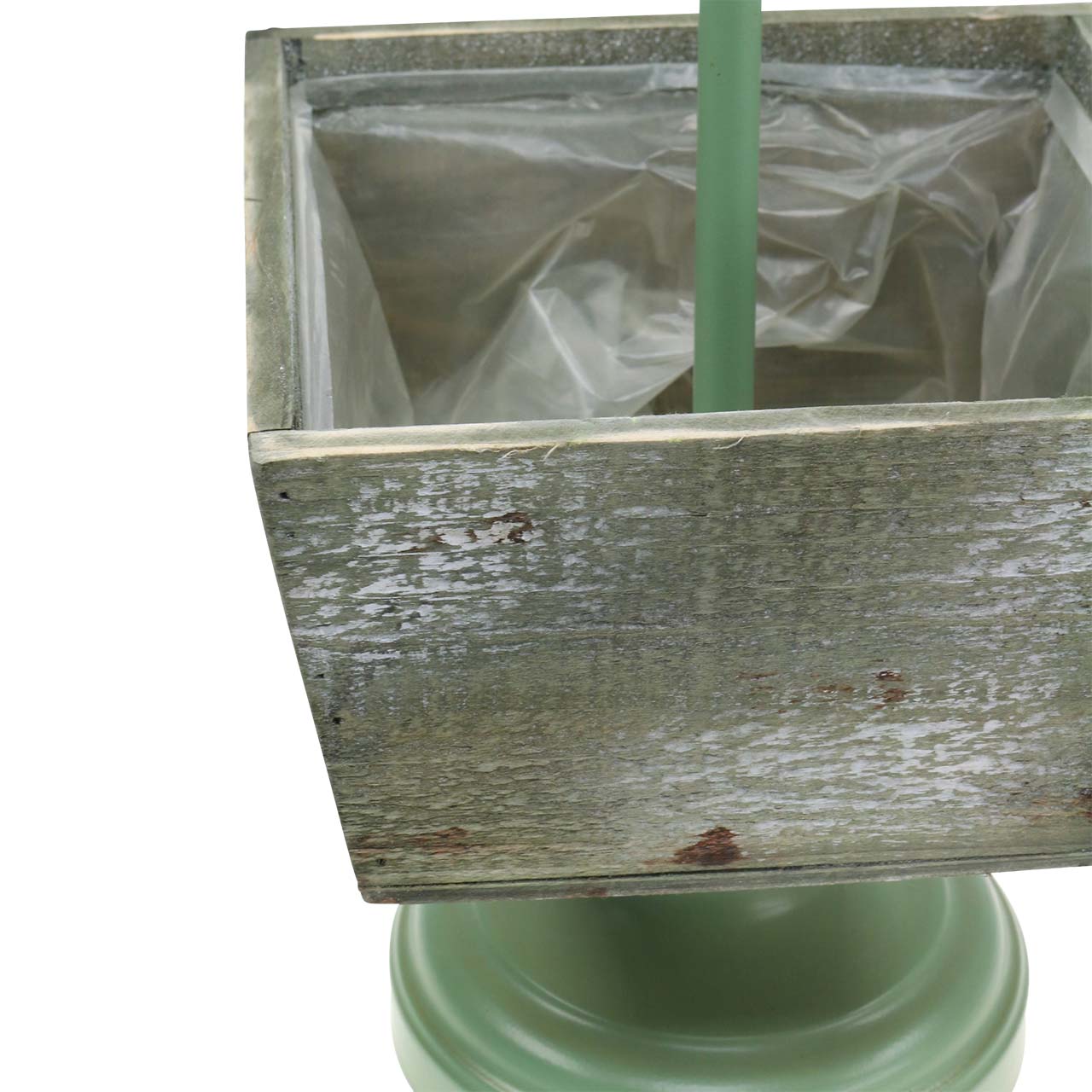 Az ültetőgép belseje műanyaggal bélelt, felfelé enyhén szélesedik, mérete körülbelül 20 cm x 20 cm. Maga a hajó magassága körülbelül 11,5 centiméter. Összességében a zöldre festett fémből készült lábos és szélkakas növénycserép körülbelül 69 centiméter magas. A szélkakas nem mozdul a szélben.