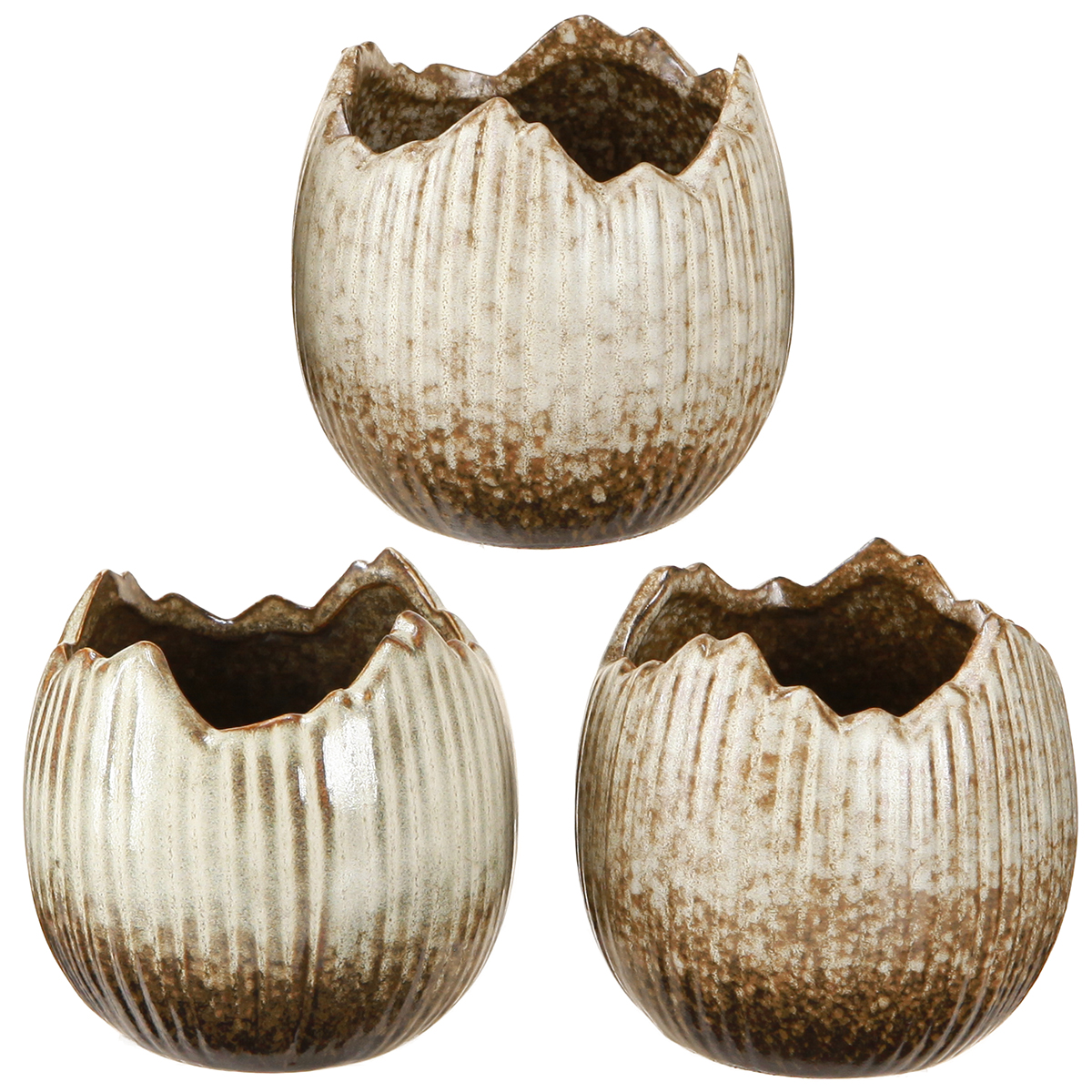 Cserepes kerámia tojás törött krém barna Ø9,5cm 3 db