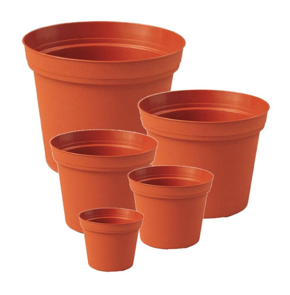 A terrakotta színű műanyagból készült belső edények sokféle növényhez és öntözőrendszerhez alkalmasak, és 8 méretben kaphatók. Az edények átmérője 11-29 centiméter. Használja a kiválasztási kártyát a termékváltozatokhoz, és keresse meg a céljainak megfelelő virágcserepet.