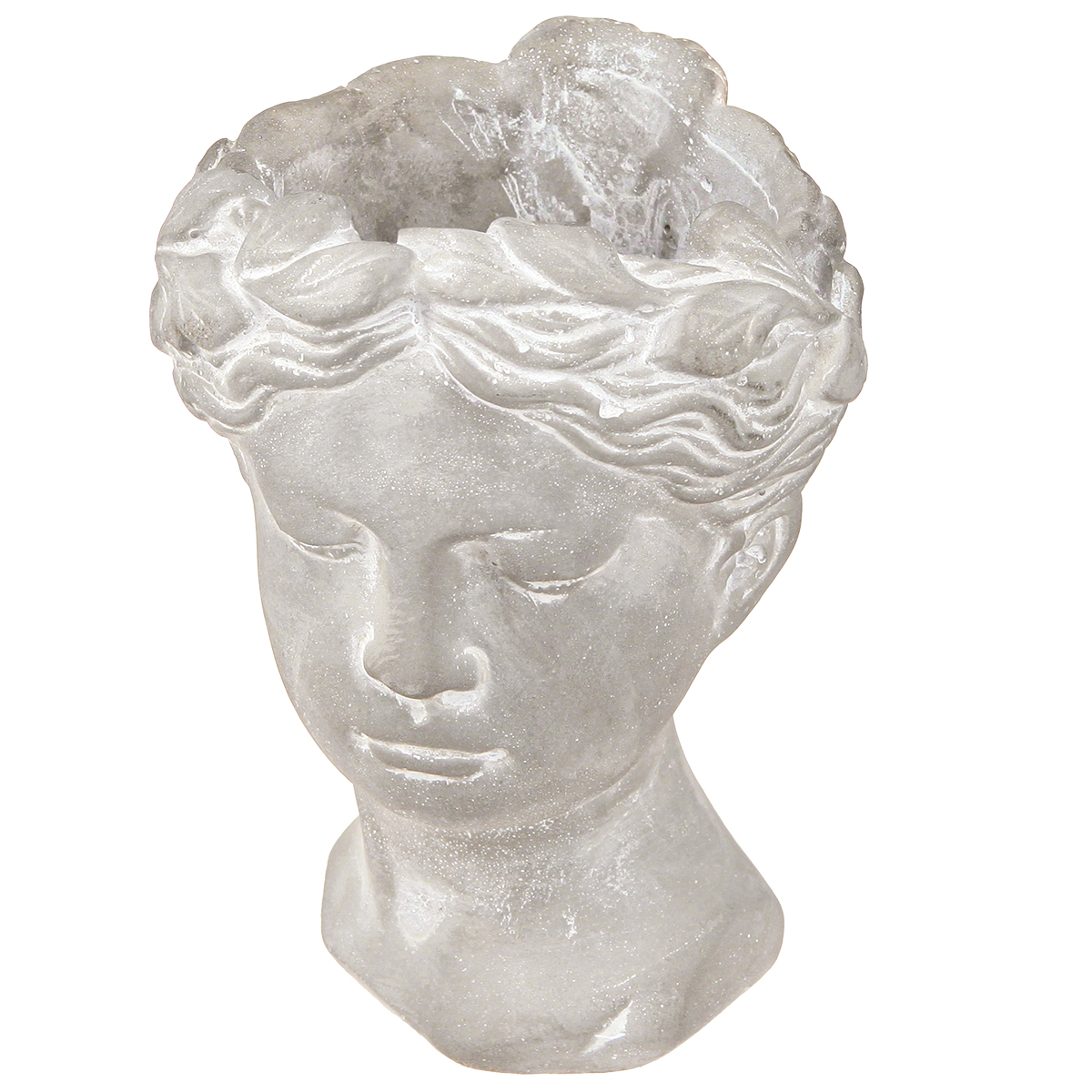 Dekoratív virágtartó női fejként: stílusos növénybemutató antik megjelenésben