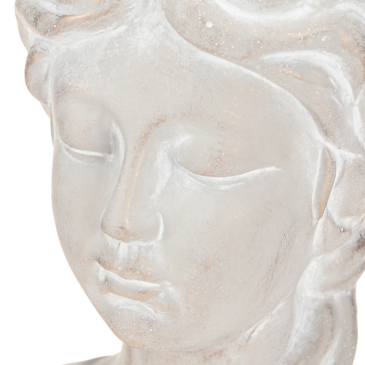 A női mellszobor formájú növénycserép egyedi dekorációs tárgy, amely varázst és eleganciát kölcsönöz minden helyiségnek. Körülbelül 20 cm magasságával ez a mellszobor alakú vintage ültetőgép lenyűgöz finom részleteivel és autentikus megjelenésével. Az öntött kőből készült mellszobor úgy néz ki, mint egy kastélypark szobra, fehér felülete, valamint a köntös hajszálain és redőinek finom aranyszegélyei révén klasszikus előkelőségekkel tölti meg a helyiséget. Ez a dekoratív virágtartó nem csak szemet gyönyörködtető bármely nappaliban, hanem ideális a Floristik24 szobanövényeinek vagy mesterséges zöld növényeinek stílusos bemutatására is.
