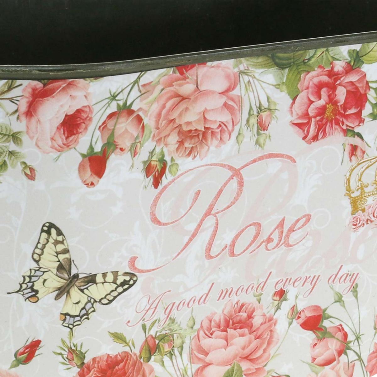 A műanyag tál lenyűgöz a rendkívül elbűvölő bazsarózsa és pillangó motívumával, amelyek mindkét oldalán „Rózsa – Jó hangulat minden nap” nyomtatott feliratot kereteznek. A háttérben a gyönyörű virágkád rózsa díszítéssel szintén rózsaszín felületet ékesít ívelt virágdíszekkel.