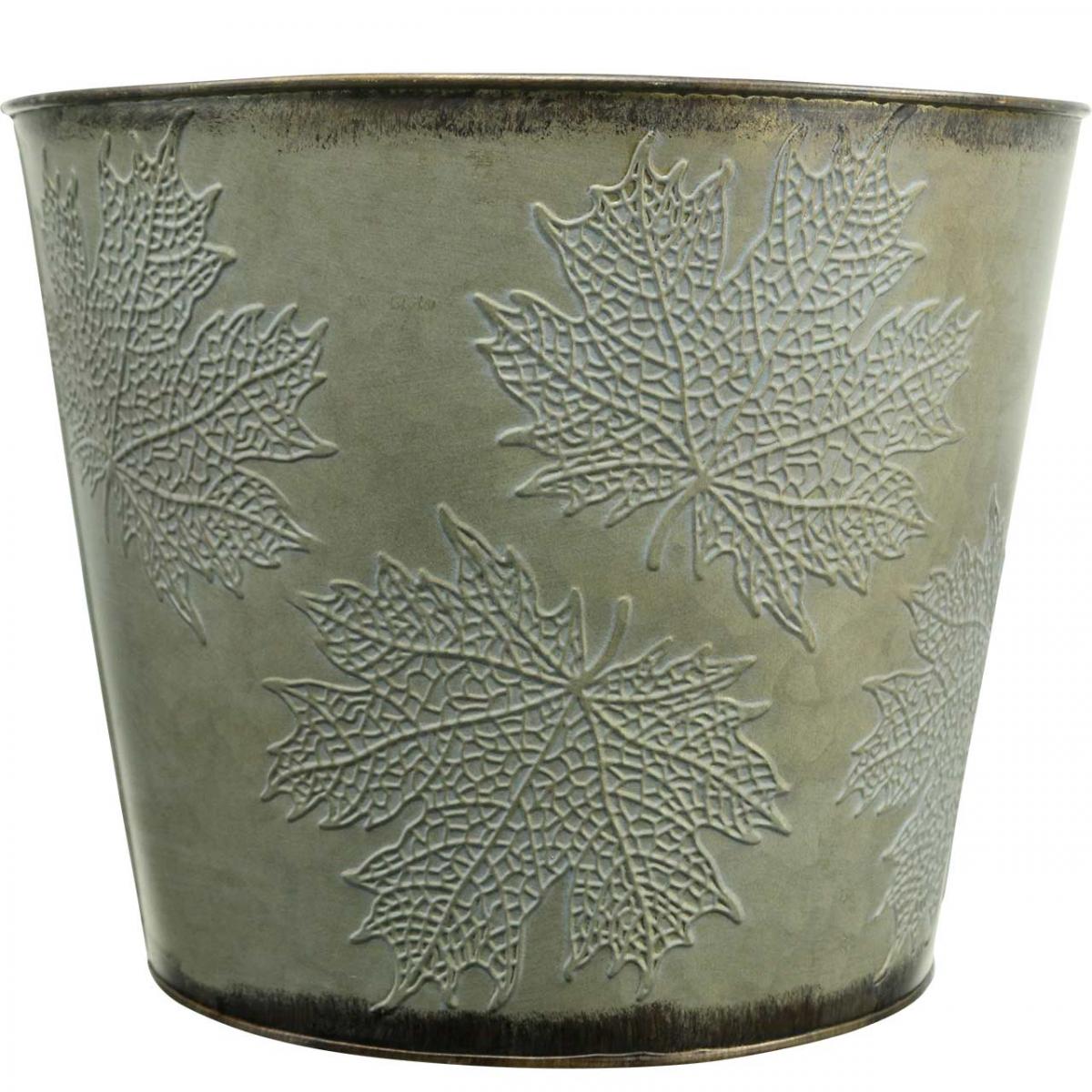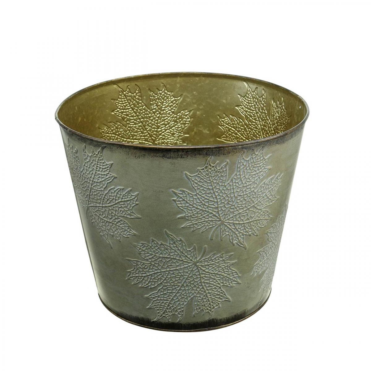 Cserepes, őszi dekoráció, fém edény levelekkel arany Ø25,5cm H22cm