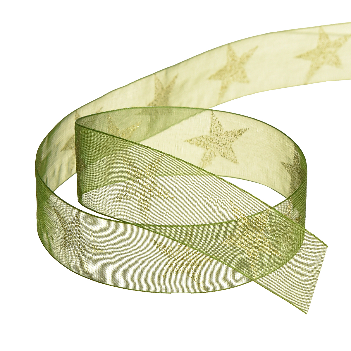 Csillag szalag zöld arany organza szalag karácsonyi W25mm L18m