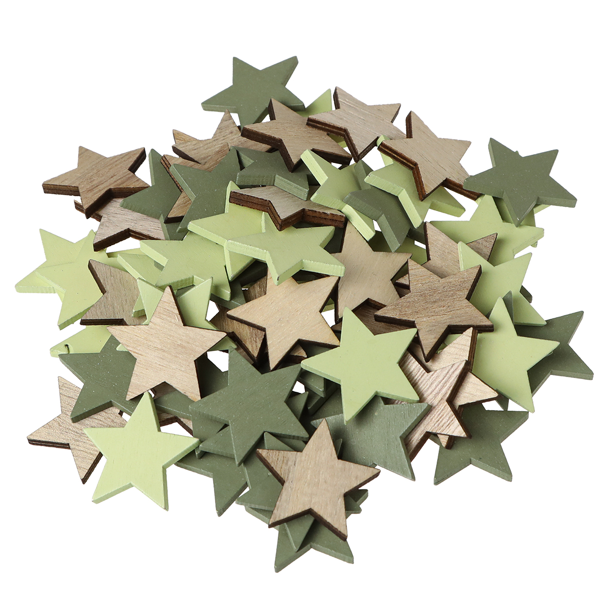 Csillagok dekoratív fa csillag shakerek natúr zöld Ø3,5cm 72 db