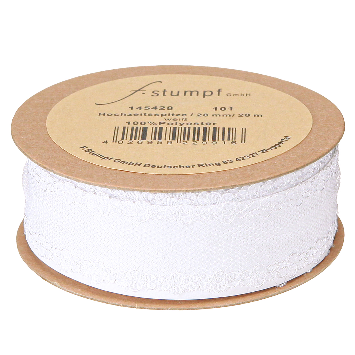 Csipke szalag esküvői szalag dekoratív szalag csipke fehér 28mm 20m