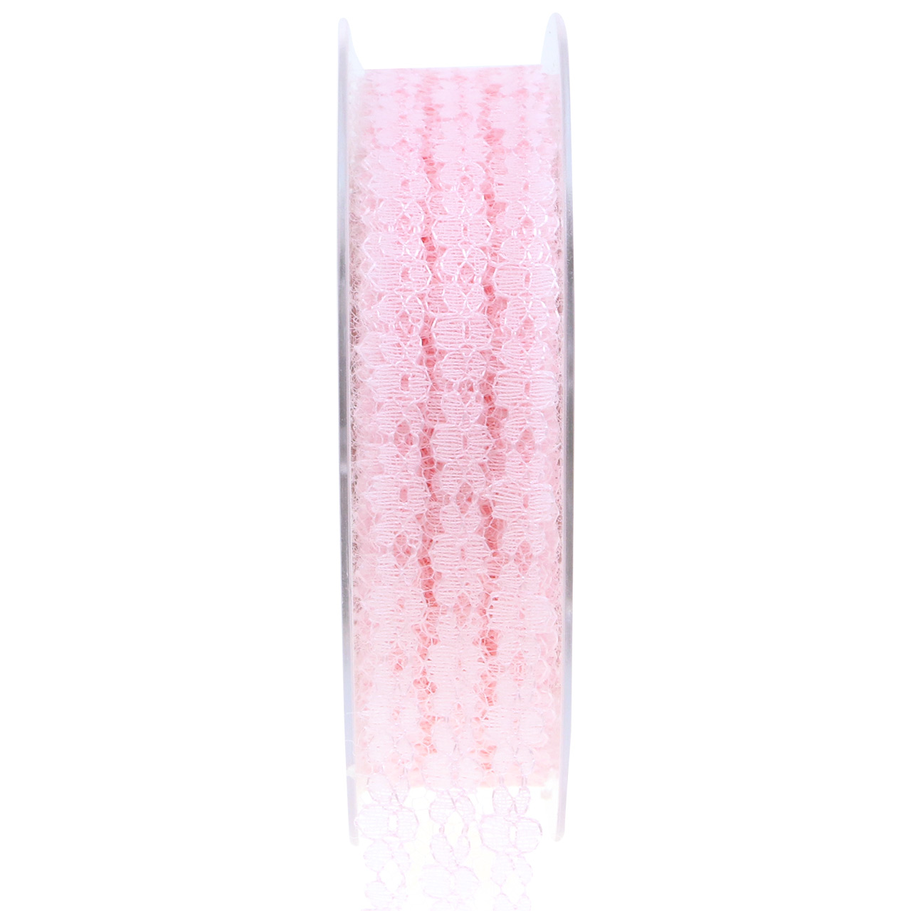 A finom rózsaszín csipkeszalag körülbelül 20 milliméter széles és körülbelül 20 méter hosszú. A díszcsipkéből készült 100%-os poliészter szalagot egy műanyag orsóra kapod, ahová egy kis tűvel feltűzik.