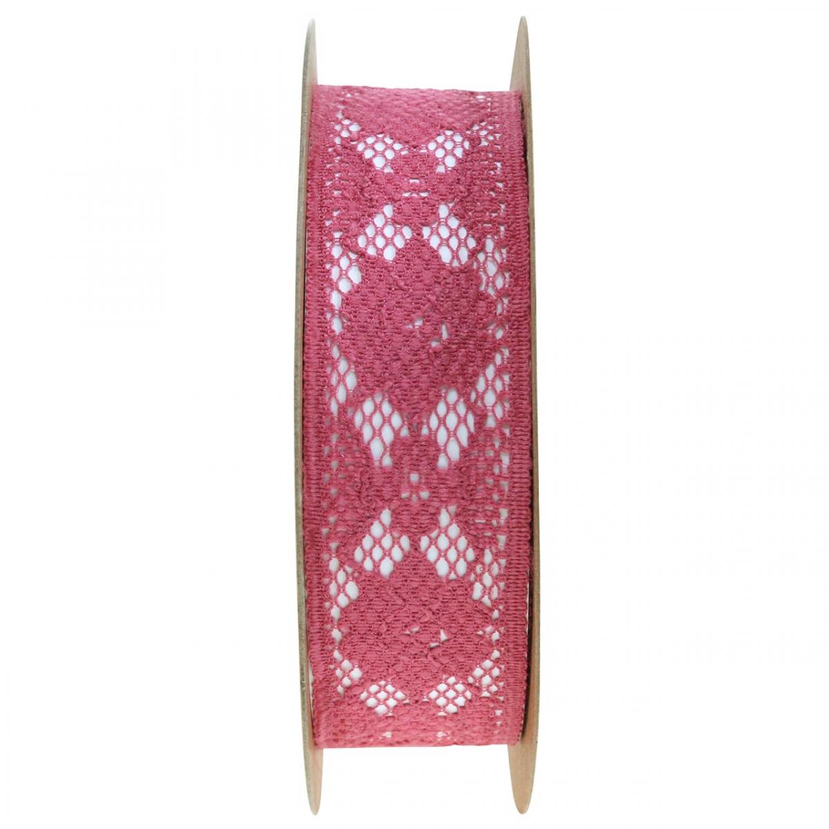 Csipke szalag rózsaszín 25mm deco szalag csipke 15m