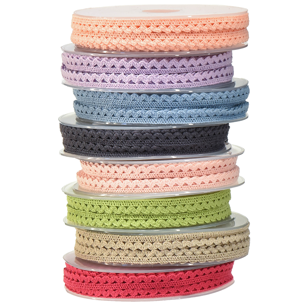 Aligha bármilyen kiegészítő alkalmasabb arra, hogy divatos vintage megjelenést adjon a hétköznapi tárgyaknak, mint ez a keskeny dekoratív szalag, amely finom horgolt csipkéből készült. A jobb oldali fül hat különböző szín széles választékát kínálja, amelyek közül választhat.