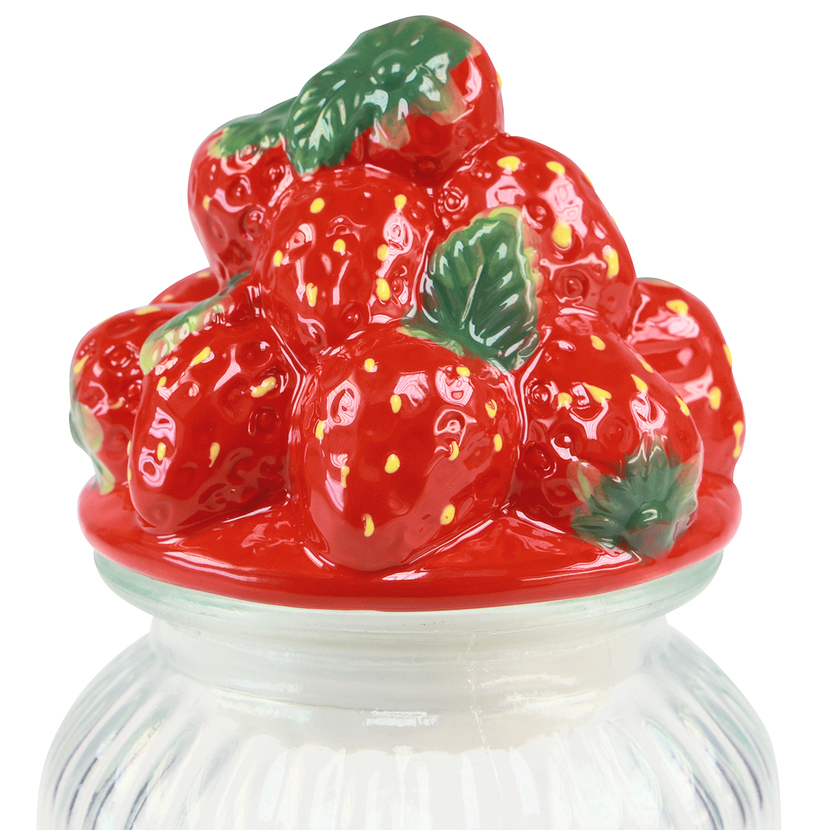 Cukorka üveg fedővel epres süteményes üveg Ø11cm H18cm
