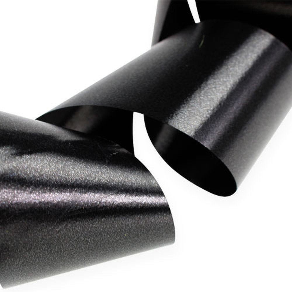A fekete hajcsavaró szalag körülbelül 50 milliméter széles és körülbelül 100 méter hosszú. 100% polipropilénből készült, és egy kis kartontekercsre van feltekerve.