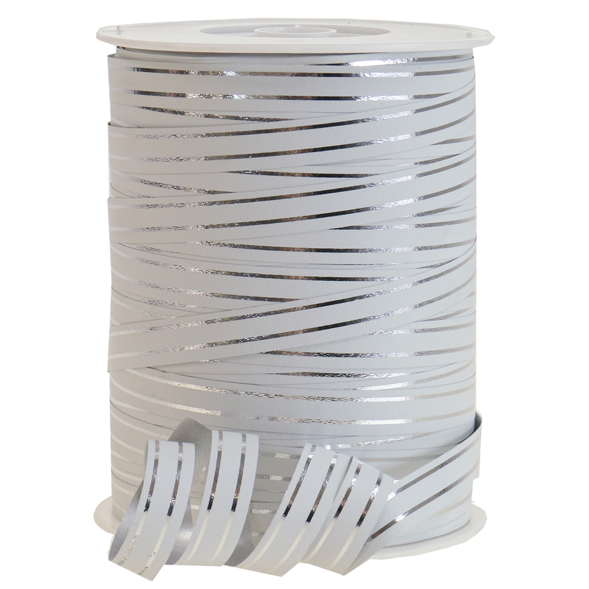 Curling szalag ajándék szalag fehér ezüst csíkokkal 10mm 250m