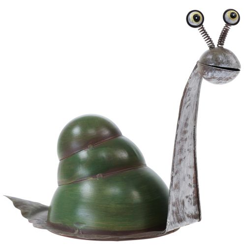 A csiga egy csodálatos és szórakoztató fémből készült dekoratív figura. Nemcsak a csigaház, hanem a száras szeme és a dekoratív csiga feje is ötletesen megtervezett és kézzel festett élénk színekkel. A fém díszítés önmagában is megállja a helyét.