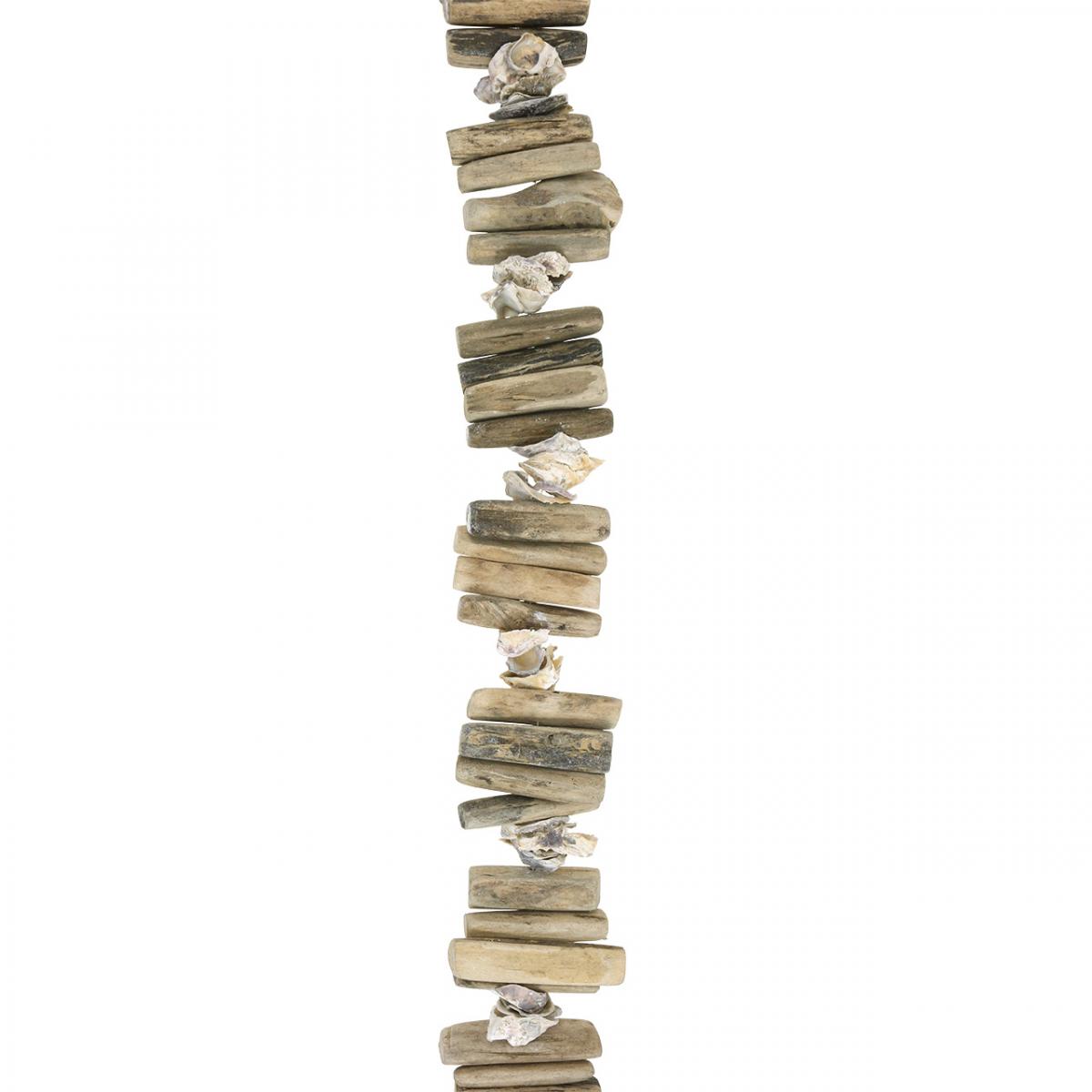 A kagylóból és uszadékfából készült dekoratív füzér körülbelül 90 centiméter hosszú, és praktikus akasztóval rendelkezik.