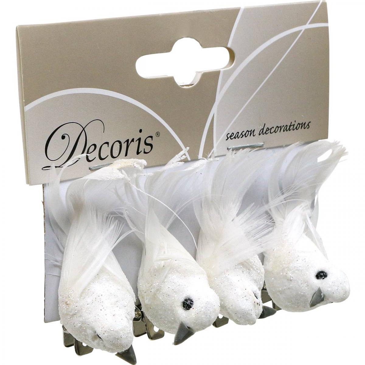 Deco galambpár Deco madár klipsszel fehér L5cm 4 db