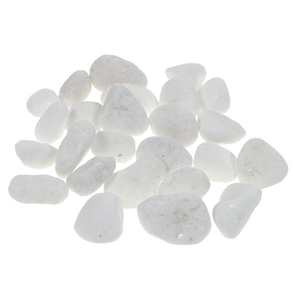 A fehér díszkavicsokat hálóban szállítjuk, az egész súlya körülbelül 1 kilogramm. Mindegyik követ a természet egyedileg alakította ki, ezért 1-2,5 centiméteresek lehetnek.