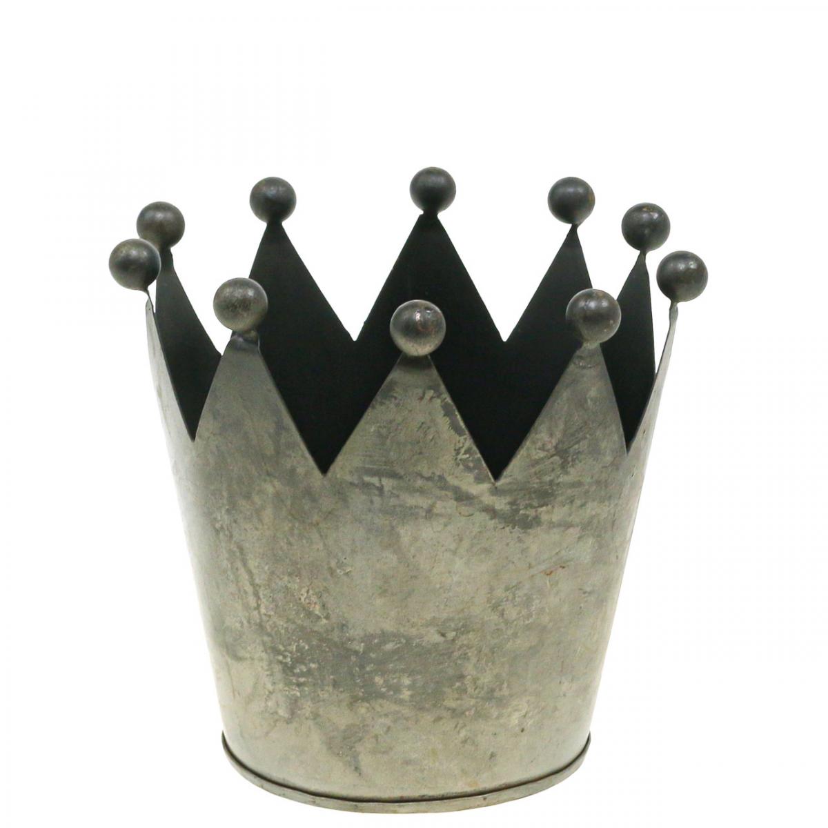Deco korona antik megjelenésű szürke fém asztaldísz Ø12,5cm H12cm