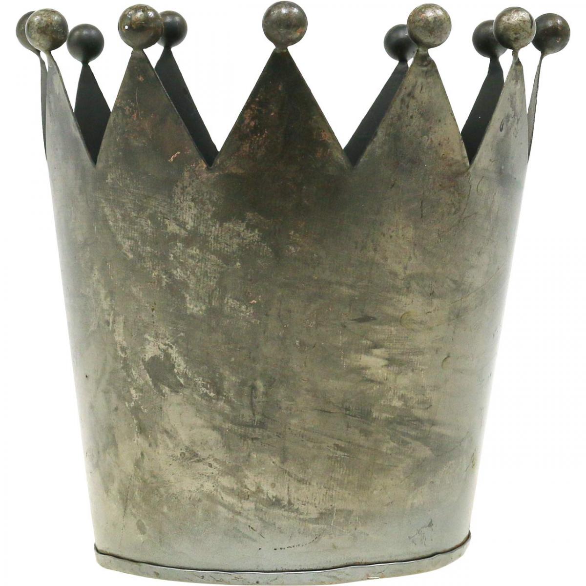 Deco korona antik megjelenés szürke fém asztaldísz Ø15cm H15cm