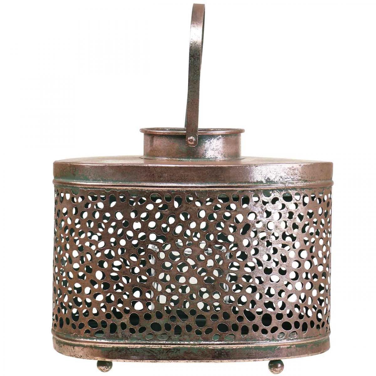 Az érdekes cseppmintázat és a rozé metál bevonat az öregedés türkizkék jeleivel különleges kiegészítővé teszi ezt a fémdíszítést, a lámpás pedig ovális formája miatt is egyedi megjelenésű.