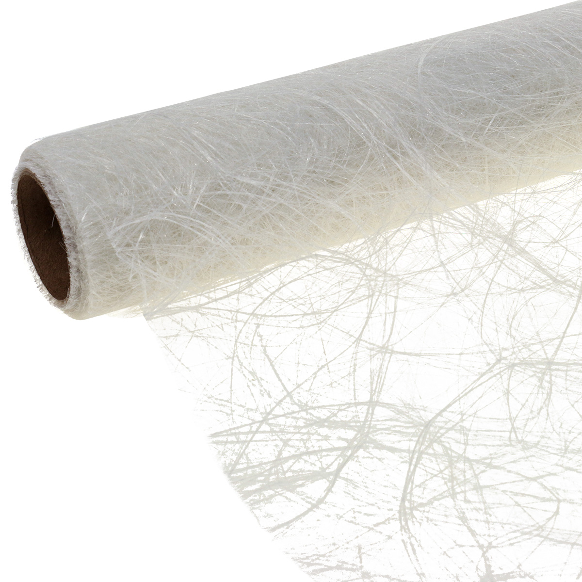A fehér színű Sizoweb asztali futóművet 30 cm széles tekercsként szállítjuk, egy karton orsóra feltekerve. A fehér dekoratív gyapjú teljes hossza körülbelül 5 méter, és ollóval könnyen vágható.