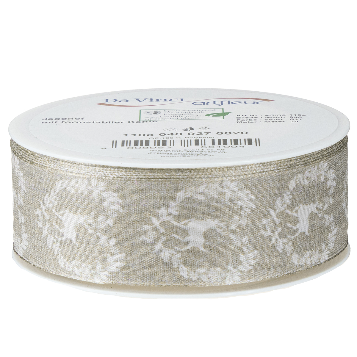 Termék neve: Deco szalag natúr szarvas 40mm 20m