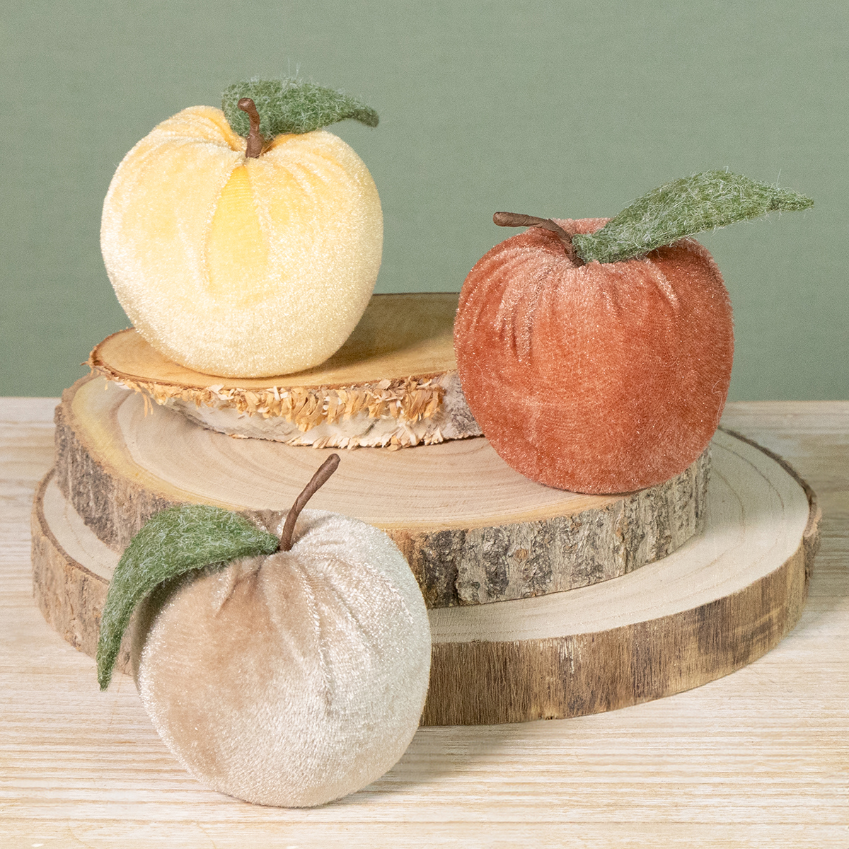 Ez a díszes bársonyalmák filclevéllel tökéletesen illik őszi dekorációdba. Fejezd ki kreativitásodat ezekkel a stílusos bársonyalmákkal, melyek három meleg őszi színben, vörösesbarnában, bézsben és sárgában, gondosan kidolgozottak. Minden egyes műbársonyalmát aprólékosan kidolgoztak, és puha anyaggal borított, bevonatos hungarocellből készültek. A bársonyos csillogás és a zöld filclevél, valamint a kis barna szár kiegészíti a részletes megjelenést, és gyönyörű kiegészítője lehet nappalid dekorációjának vagy őszi asztaldíszeidnek. Akár elegáns polc részeként, szezonális partidekorációk között vagy kreatív fotóháttérként szolgálnak, ezek az almák sokoldalúságuknak köszönhetően dekorációd fénypontjai lesznek.