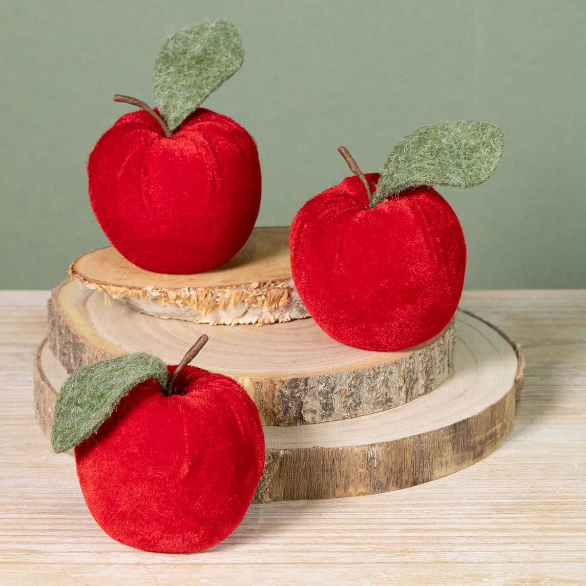Dekoratív almafa anyag levélbársonnyal és filccel piros Ø7.5cm M9cm 9 db
