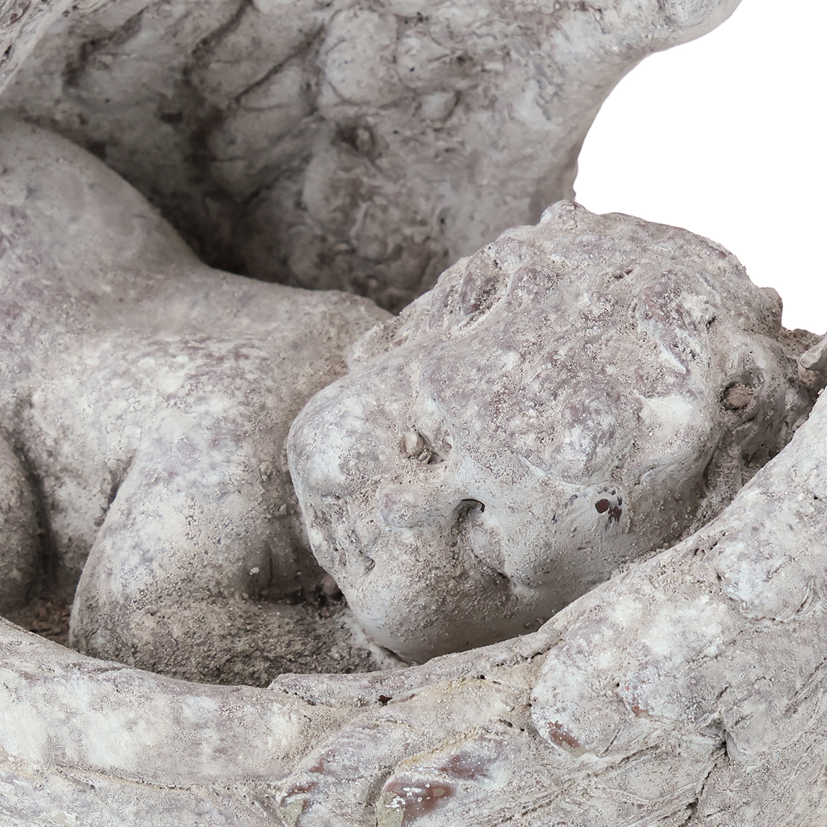 Ez a díszes angyal, amely egy szárnyai által védett alvó csecsemőt is ábrázol, nem csupán egy figura; a béke, a védelem és a szeretetteljes emlékek szimbóluma. Ez az angyalszobor tökéletes magánzugok felpezsdítésére vagy temetőkben a vigasz forrásaként szolgálhat. Akár a kertben, virágzó cserjék között, akár otthon az ablakpárkányon áll, ez a figura mindenki figyelmét magára vonzza. Békés alvópozícióban pihenve az angyal félig nyitott szárnyai biztonságérzetet keltenek. Tartós öntött kőből készült, harmonikusan illeszkedik mind a modern, mind a klasszikus belső stílusokhoz.