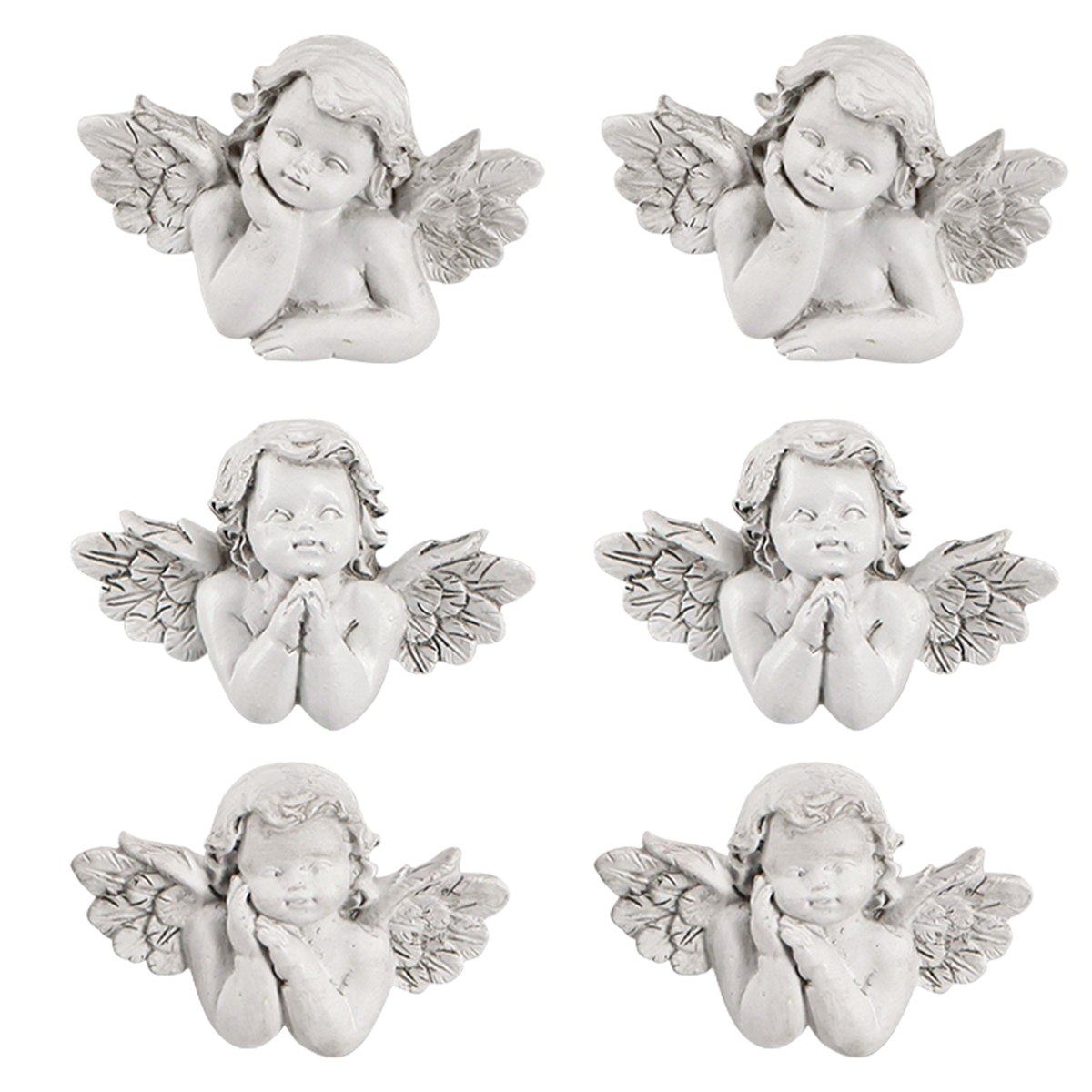 Dekoratív angyalszürke sírdísz polirezin 7,5×5cm 6 db