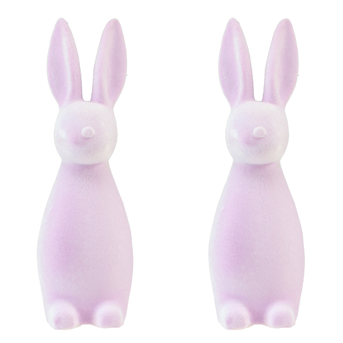 Termék neve: Dekoratív bolyhos húsvéti nyuszik – 2. választás – világoslila 8×10×29cm 2 db