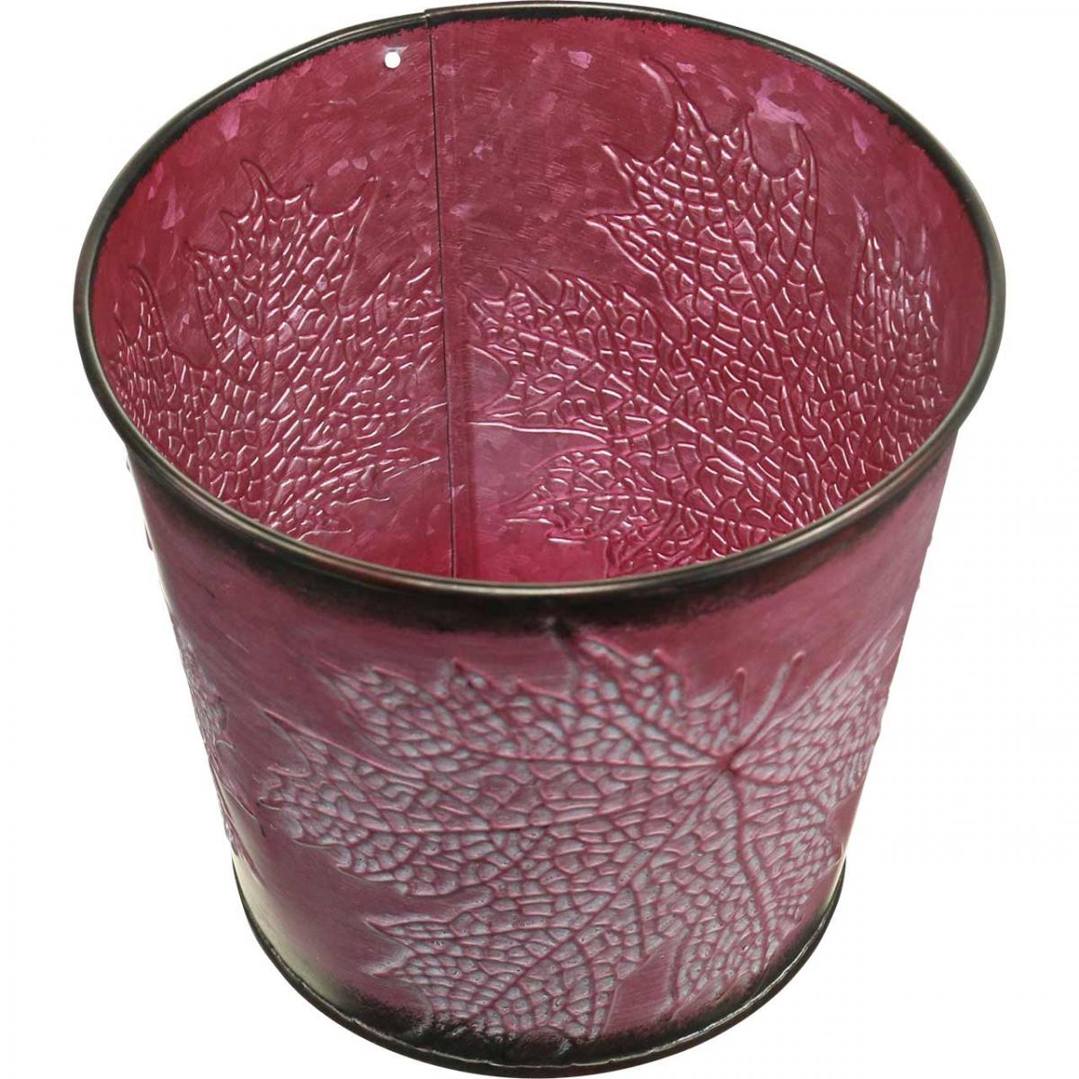 Termék neve: Dekoratív cserép ültetésre, bádog vödör, fém díszítés levélmintás borvörös Ø14cm H12,5cm