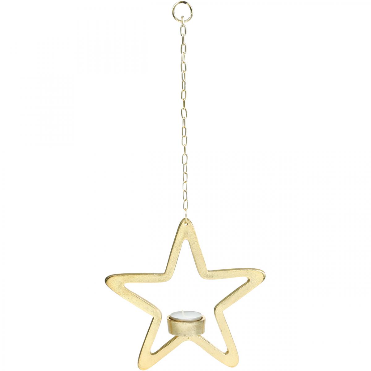 Termék neve: Dekoratív csillag teamécses tartó akasztható fém arany 20cm