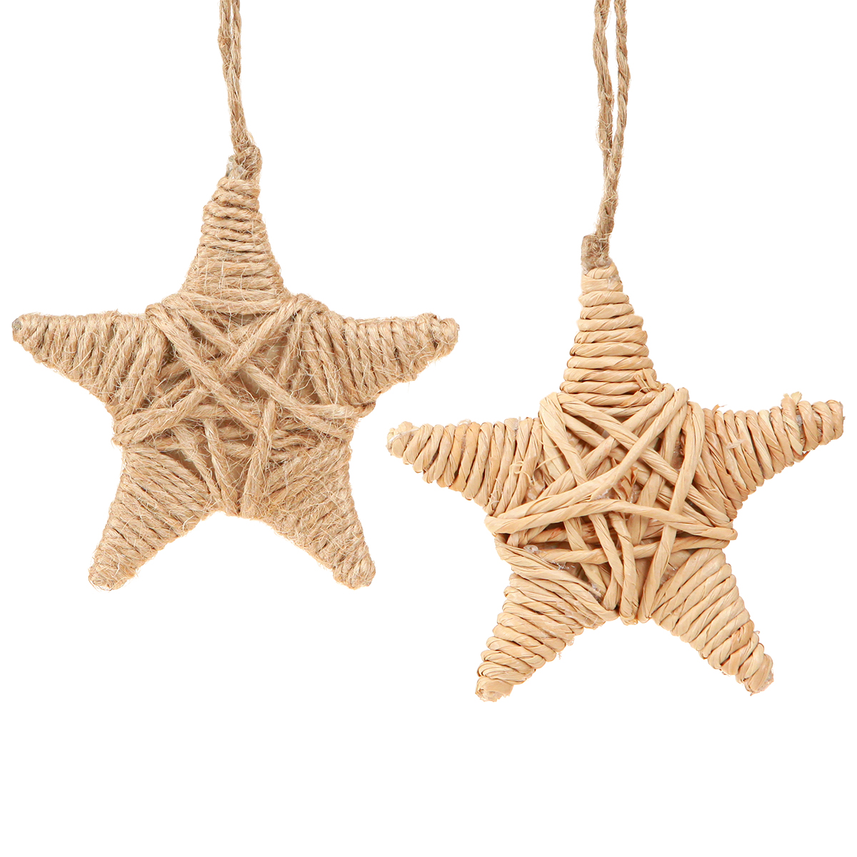 Dekoratív Csillagok, Kender Raffia, 7,5 cm, Karácsonyfa Díszek, 8 Darab