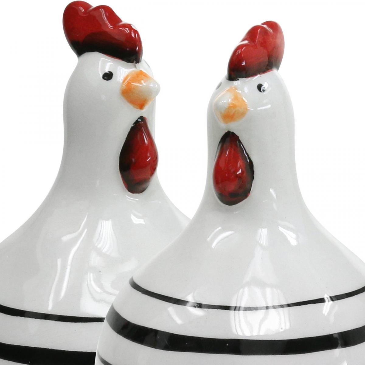 Termék neve: Dekoratív csirke kerámia fehér fekete csíkokkal kerek Ø 7cm H11cm 3 db