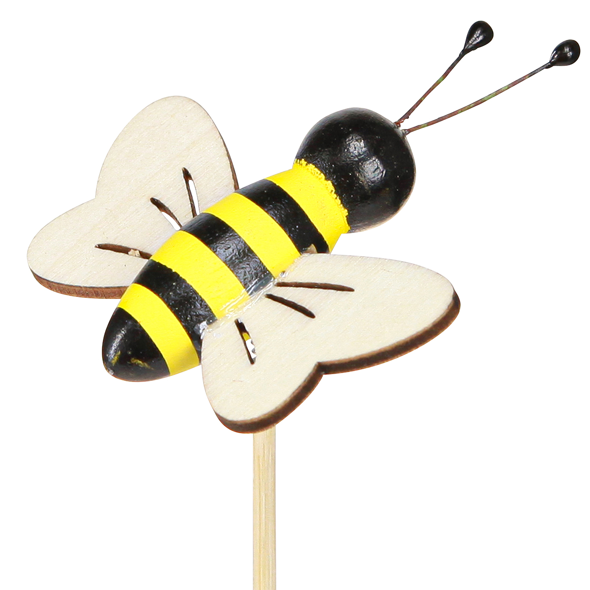 Dekoratív dugó méhek dekoráció fa fekete sárga 6cm H35cm 8 db