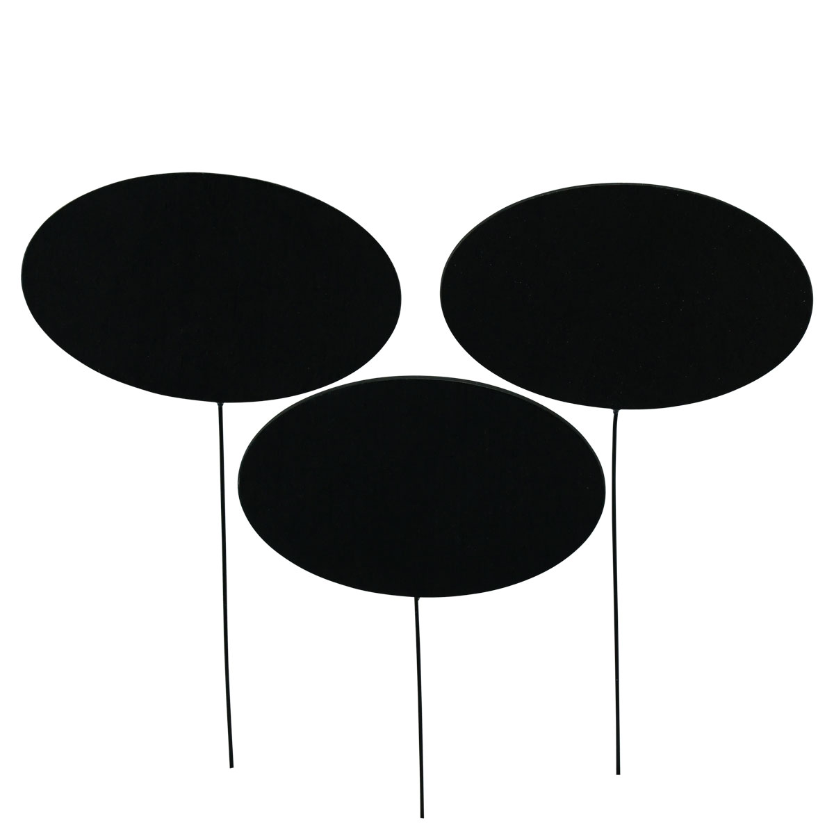 Termék neve: Dekoratív fekete ovális krétatábla fa cövekek 10×6 cm 12 darab