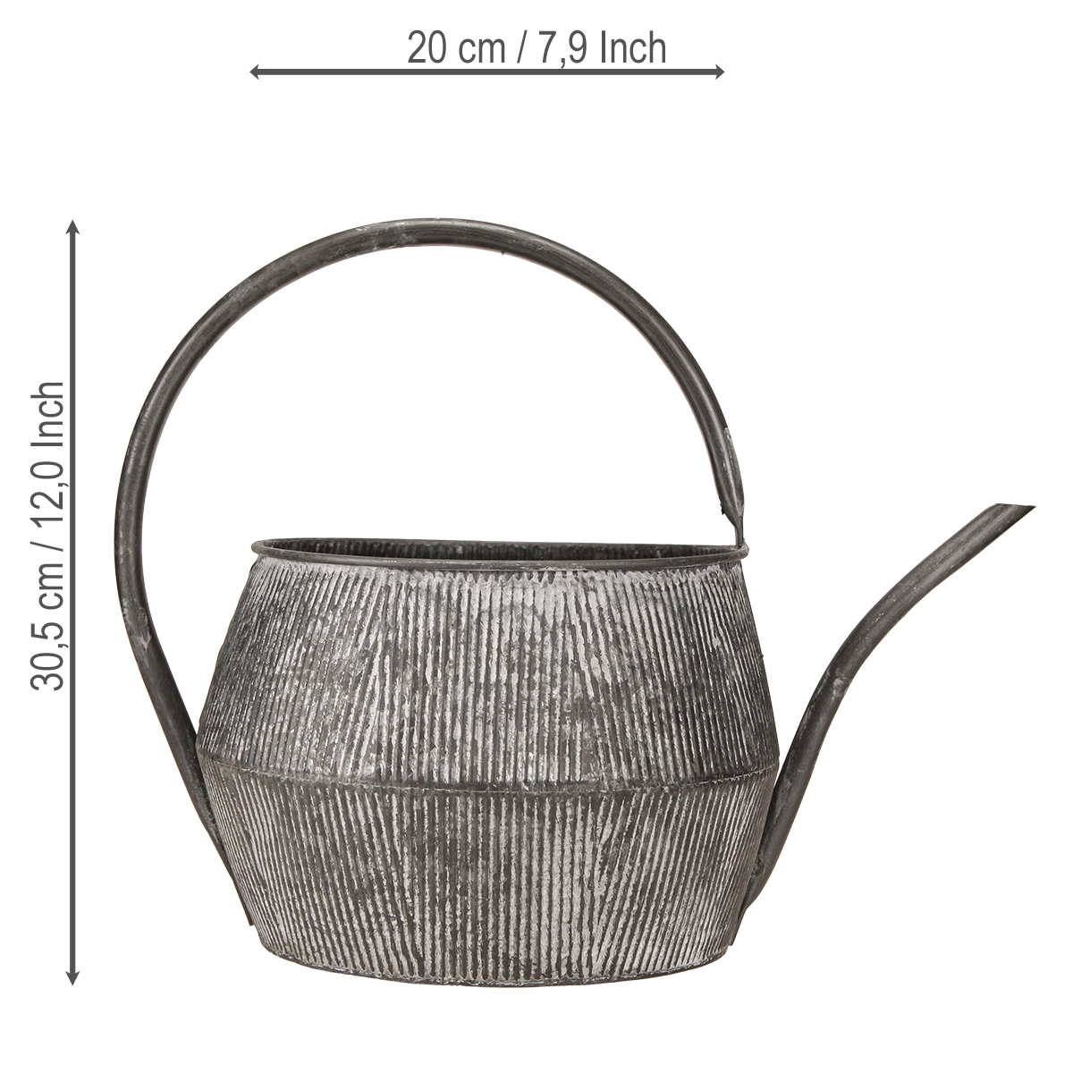 Üdvözöljük a bájos dekoráció világában, amely ötvözi a stílust a funkcionalitással. A fekete fémből készült dekoratív öntözőkanna nemcsak szemet gyönyörködtető, hanem időtálló dekorációs darab is, amely minden helyiségben beszédtéma lesz. A hagyományos teáskanna vagy egy nosztalgikus vízforraló formája által ihletett darab a letűnt idők eleganciáját modern érintéssel ötvözi. A fekete fém gyengéden mosott szürke, és tökéletesen illeszkedik a retro, vintage vagy akár minimalista belső stílusokba. A lenyűgöző, körülbelül 39 cm × 25 cm × 30,5 cm méretű öntözőkanna bőséges helyet kínál stílusos virágcserépként vagy fém ültetőként. Közvetlen ültetésnél a dekoratív teáskanna-szerű öntözőkannát ajánlatos ültetőfóliával kibélelni és vízelvezető réteggel ellátni az optimális növényápolás érdekében. Használja ezt a darabot erkélydekorációként vagy vintage dekoráció részeként, hogy harmonikus légkört teremtsen bel- és kültéren.