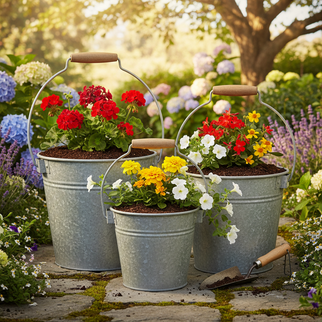 Fedezze fel vintage stílusú dekoratív vödreinket, amelyek nem csak fém cserepként mutatnak jól. A készlet három méretet tartalmaz (Ø15/17,5/22cm), amelyek tökéletesek otthona, erkélye vagy kertje minden sarkába, hogy nosztalgikus hangulatot varázsoljanak.
