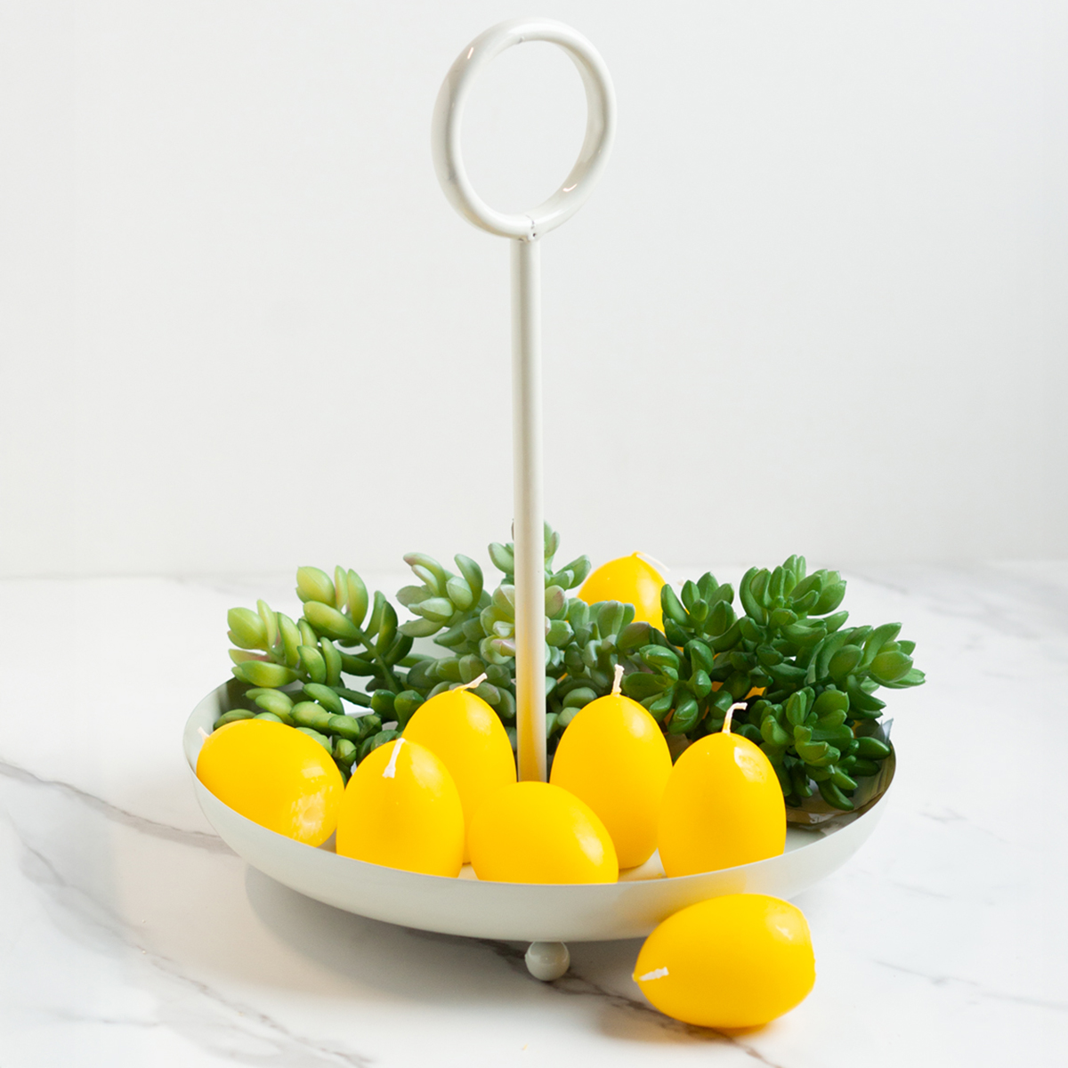 A masszív fém fogantyú nemcsak vizuálisan vonzó, de praktikus is – tökéletes a tál könnyű hordozásához. A tál ideális apró tárgyak, például kulcsok, ékszerek vagy egyéb apróságok rendszerezésére is. Virág- és barkácsolás szerelmeseinek tökéletes alapot nyújt szezonális virágdíszek készítéséhez.