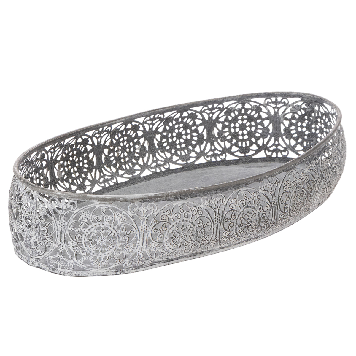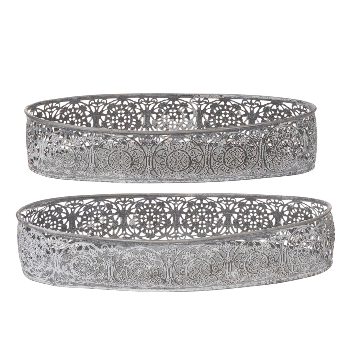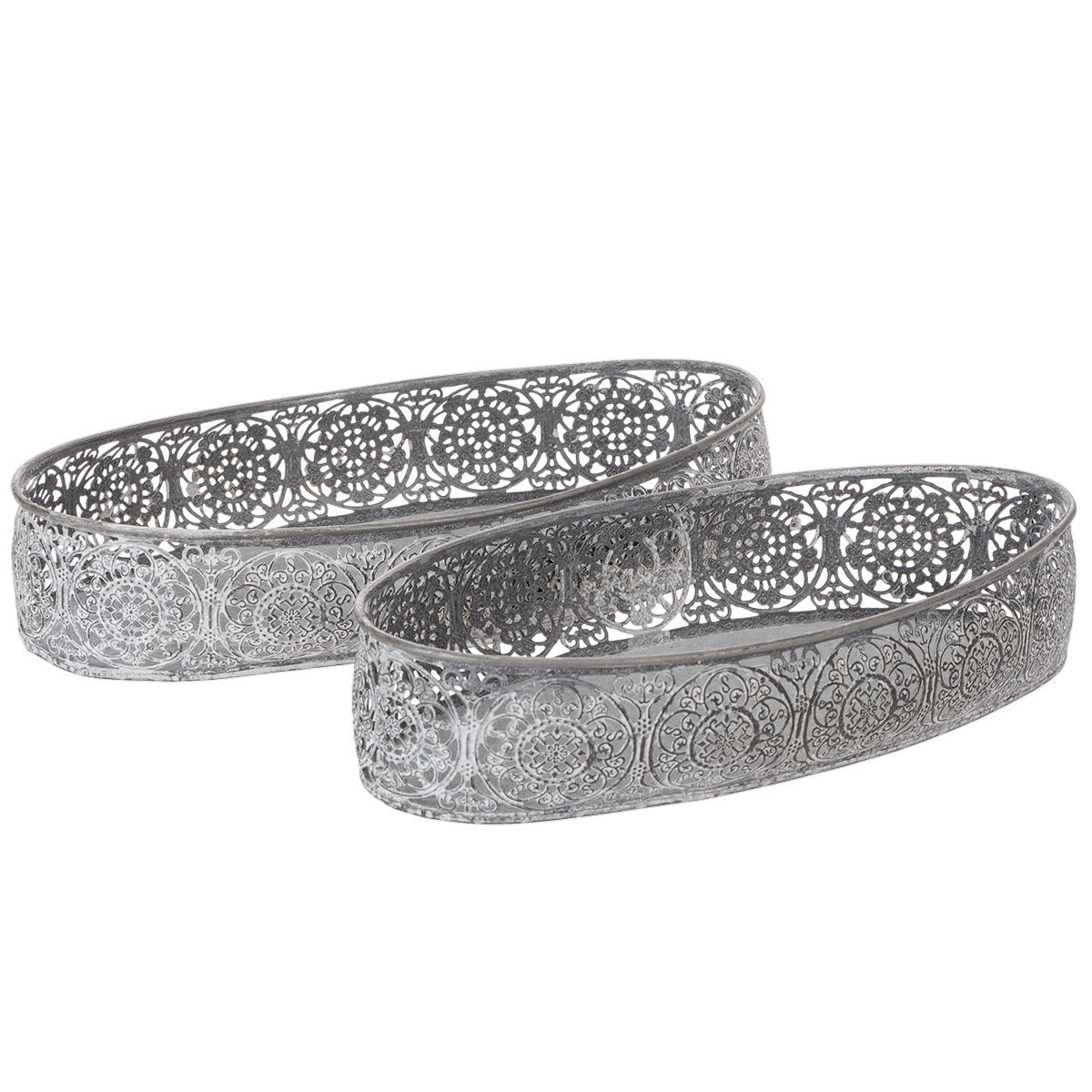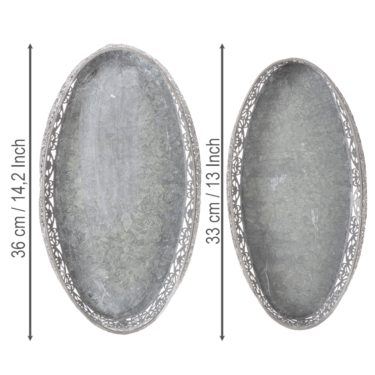 Dekoratív fémtál, szürke mintás, ovális, H36cm/33.5cm, 2 db-os szett