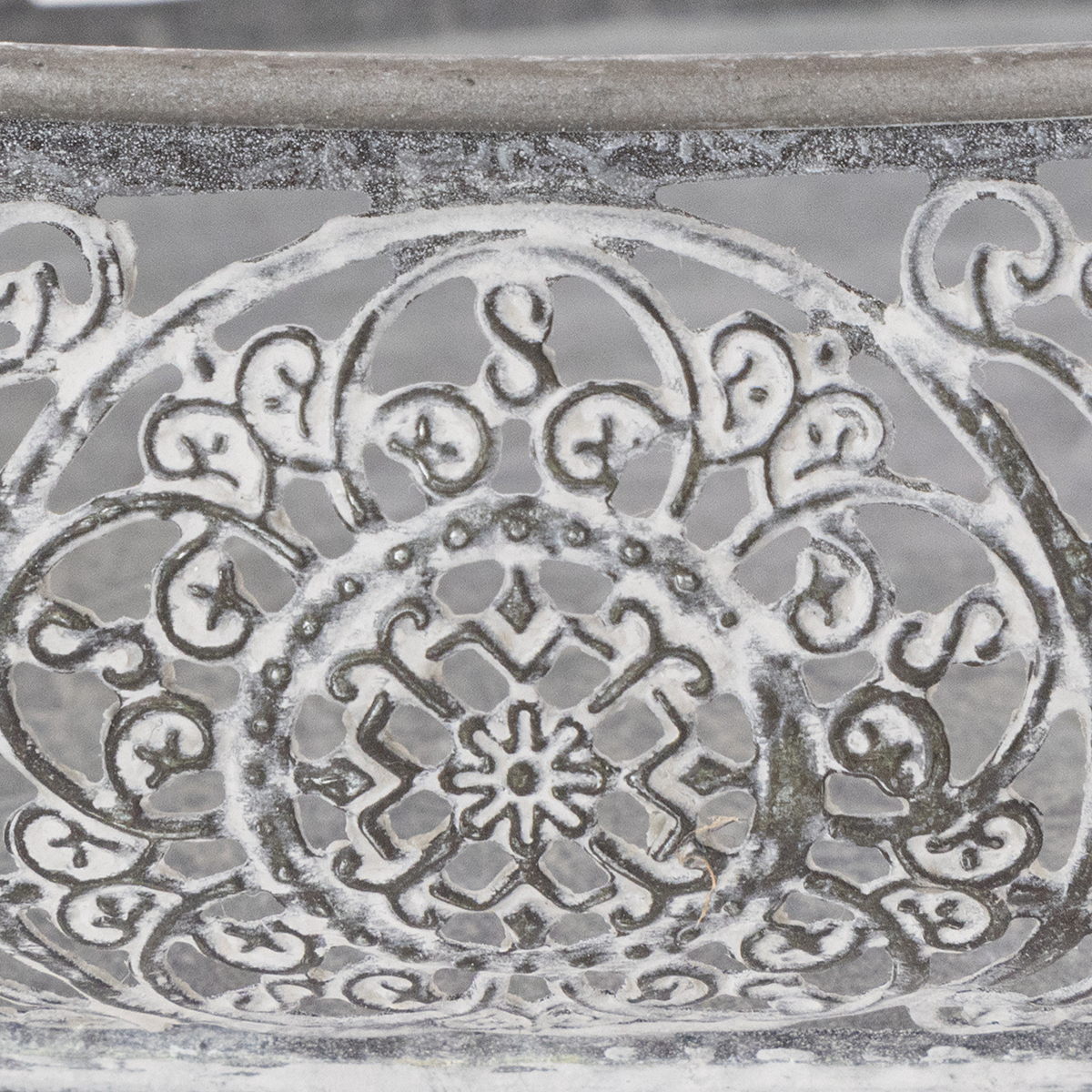 A finom bemélyedésekben indák látszanak – ha jobban megnézed, láthatod a dekorban az ötszirmú virágot. Nyugodtan szánja rá az idejét, és tekintse meg ennek a sokoldalú dekoratív szegélynek a szeretetreméltóan megtervezett részleteit.