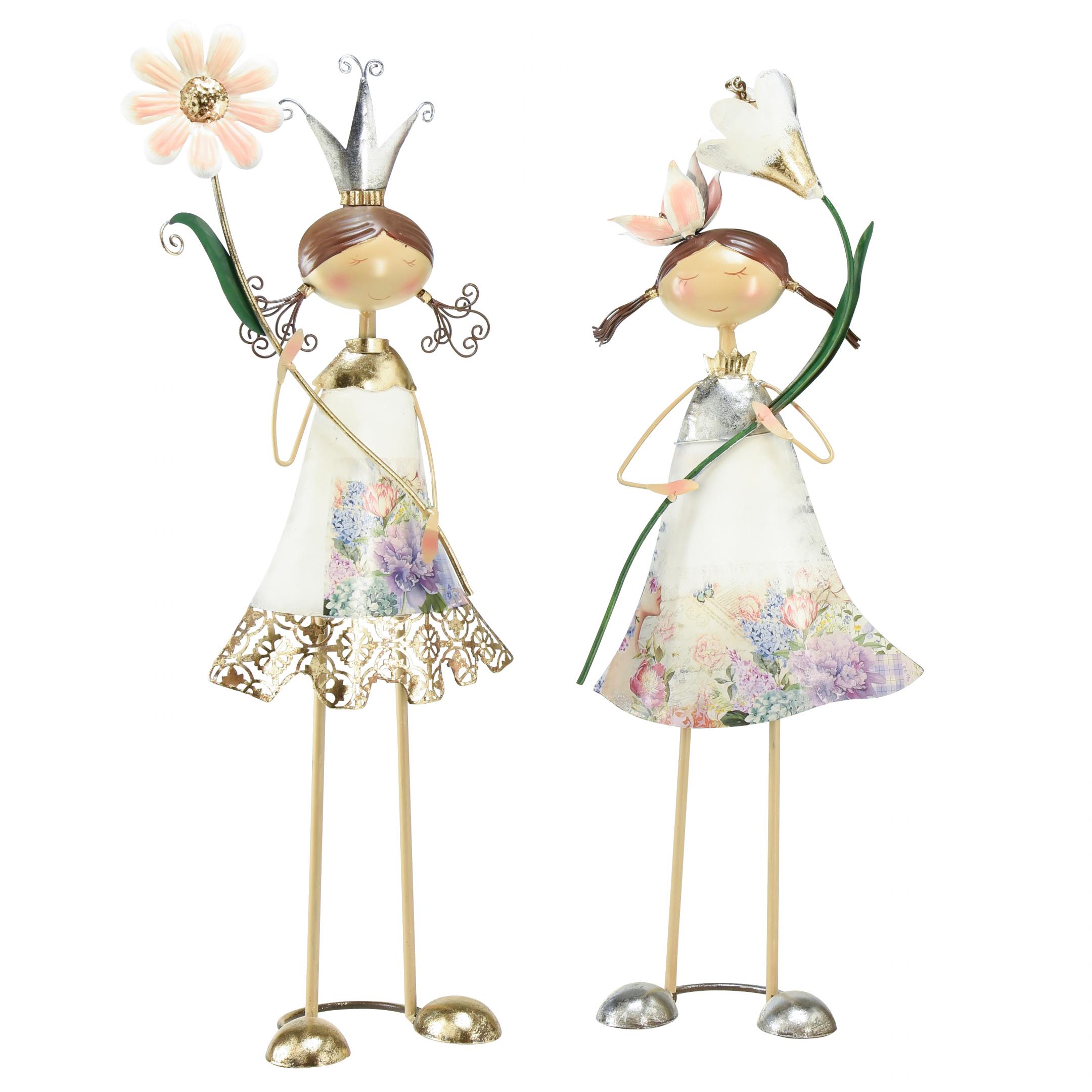Ezek a fém dekoratív figurák két kedves lányfigura, akik mintha csukott szemmel álmodnának. A lányok virágot tartanak a kezükben. Szép dísze egy fedett erkélynek!De ezek a csaknem 60 centiméter magas dekoratív figurák a kirakatban vagy a folyosó komódján is szemet gyönyörködtetőek lesznek.