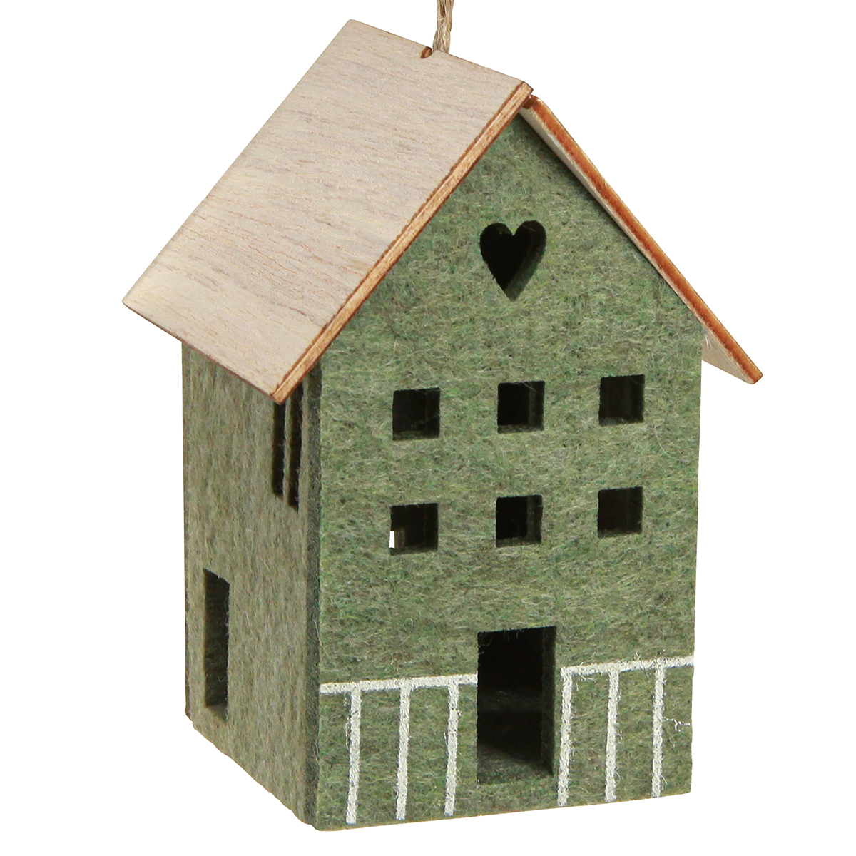 Dekoratív filc házikó akasztók, natúr zöld, karácsonyi dekoráció, 4 db-os készlet